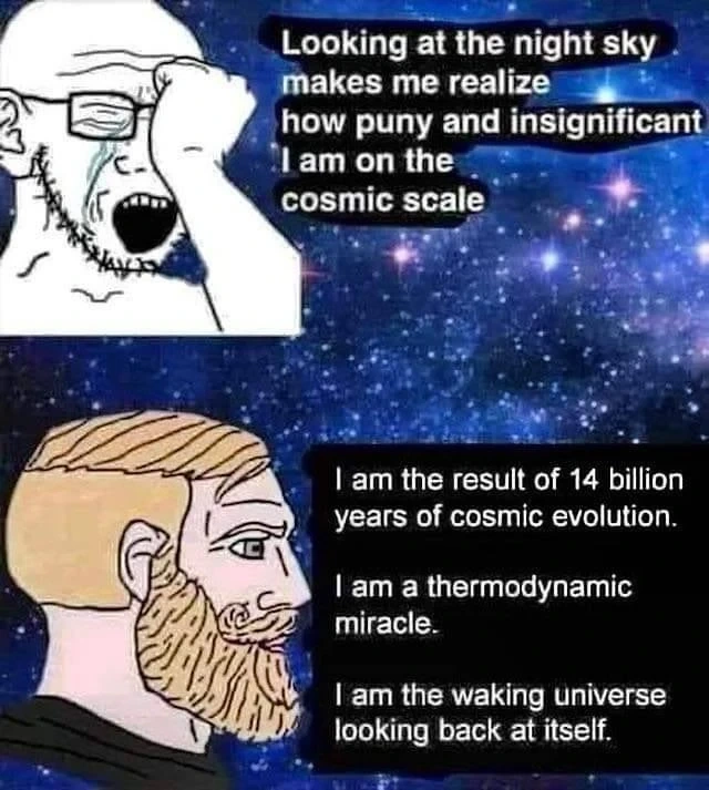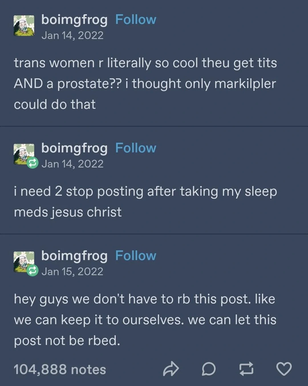 Alt text: a transmasc ball sits with eye closed. He notices a car honking and opens his eyes in confusion. The car is rainbow stripe coloured, and in there sit genderqueer, agender, bigender, and demiboy. The genderqueer says: get in transgender, we’re going to reassure people their gender identity is valid!